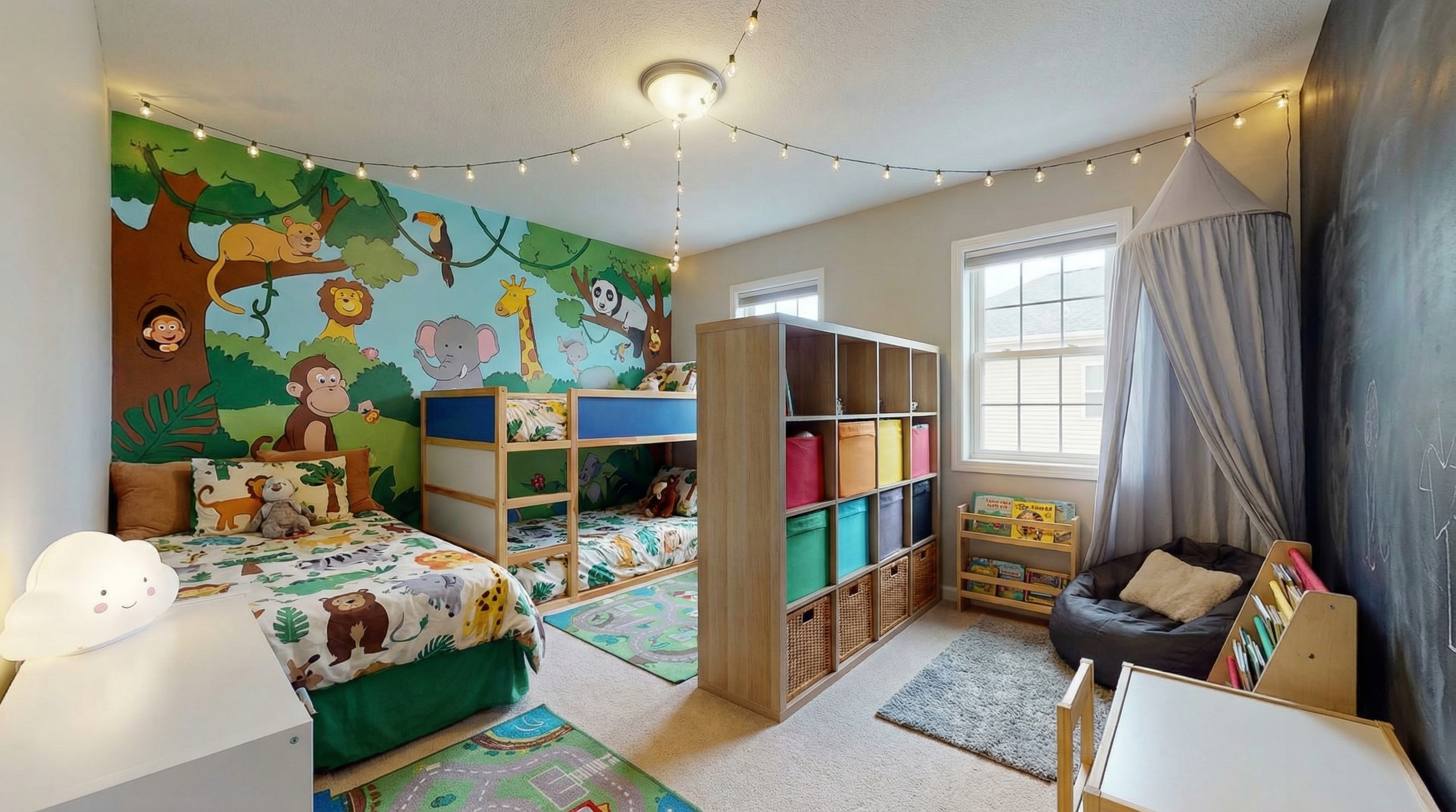 Compact single nursery, large playroom, shared bedroom for siblings, or teen suite β€” the AI handles every kids room layout. Bunk beds, loft beds, cribs, desks β€” just upload a photo and see the magic.
